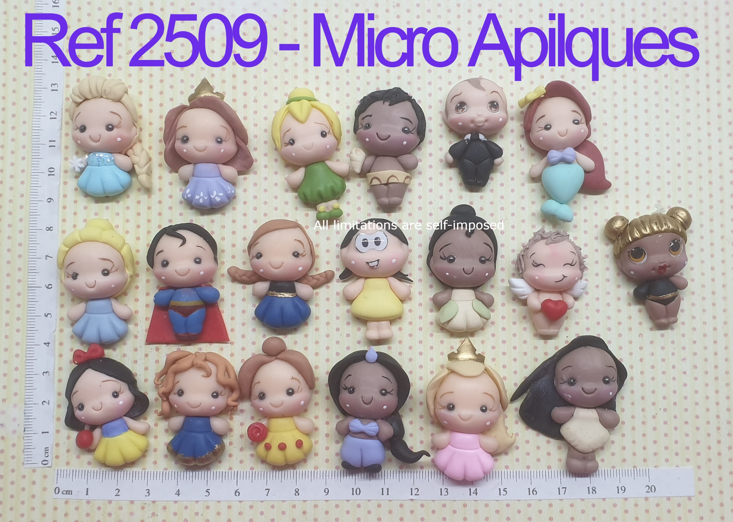*(nas peças, estas medidas podem variar consoante marca da massa de biscuit ou do grau de humidade da mesma)